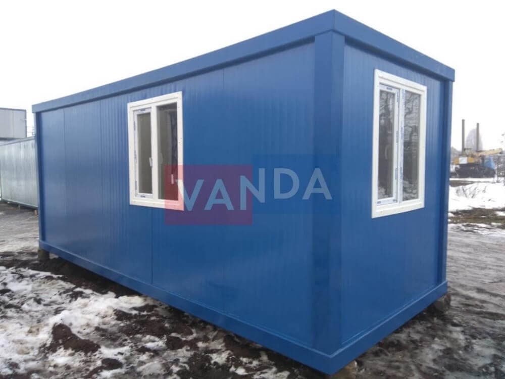 Контейнер состоит из металлического сварного основания. Стены изготовлены из сэндвич-панелей с прокладкой утеплителя. Крыша покрыта крашенным холоднокатаным металлом 1,2 мм. Помещение обустроено пароизоляцией при помощи технической пленки, которая проложена на полу и потолке. Внутренняя облицовка потолка выполнена из ПВХ-панелей, пол – из шпунтованной доски. Вход в помещение оборудован запирающейся металлической дверью.